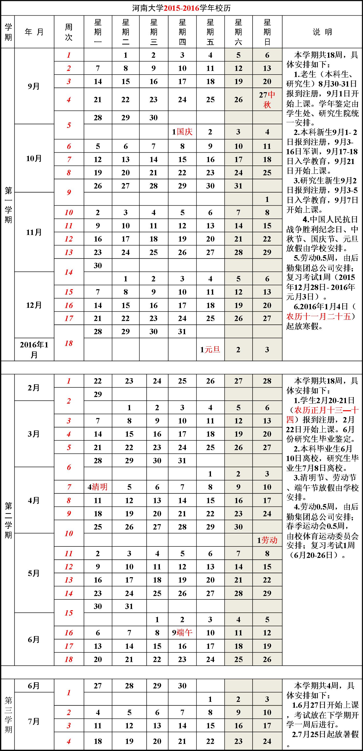 河南大学2015—2016学年校历